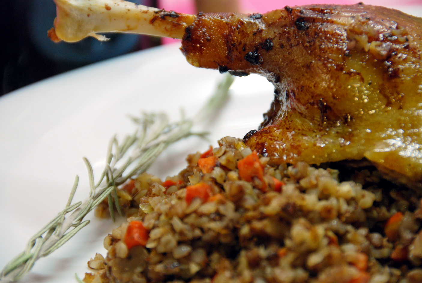 Отвариваем до полуготовности гречневую крупу (индоутке об этом ни слова, помним, что ее патрицианское происхождение приемлет только ананасы с трюфелями) и миксуем ее с обжаркой